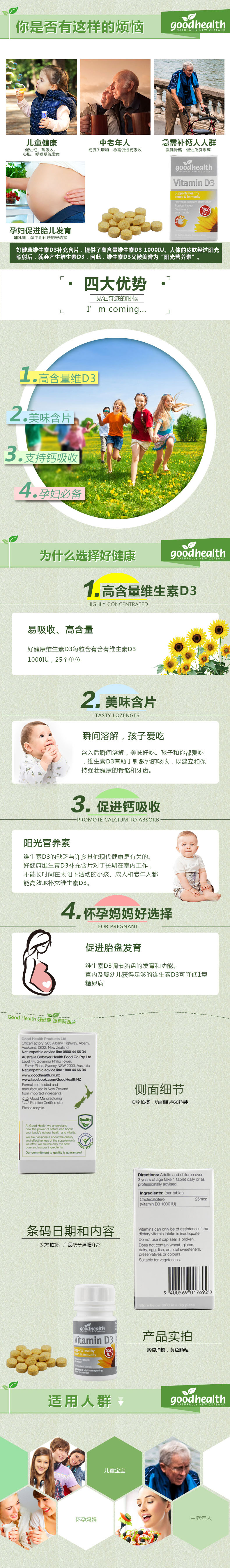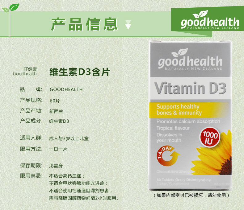 Good Health 好健康D3含1000IU 120片 入嘴融化 热带水果味